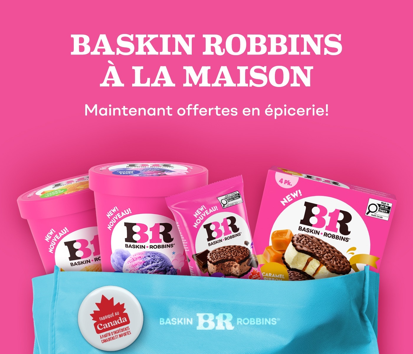 Les contenants et sandwichs à la crème glacée BASKIN ROBBINS® sont disponibles dans la plupart des grands détaillants à travers le Canada, y compris Loblaws, Metro, Sobeys et Walmart.